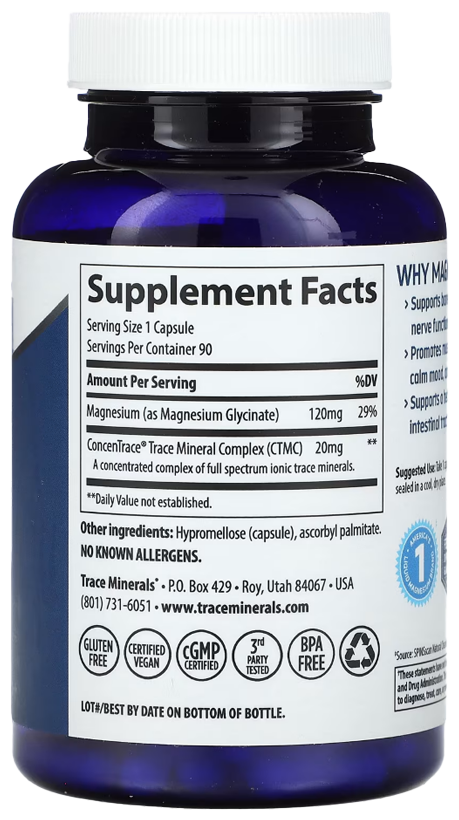 Trace Minerals Magnesium Glycinate 120 mg, 90 капсул